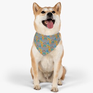 The pet bandana collar puts a fun spin on standard animal accessories. It is made of polyester duck fabric. The bandana collar is available in three sizes to fit any pet. The construction and printing is durable enough for machine washing. The collar fastening helps to keep the bandana fitting correctly, even during play. .: 100% polyester .: Adjustable black collar with plastic buckle .: One-sided print .: Pre-constructed item (size varies +/- 1"(2.5cm))